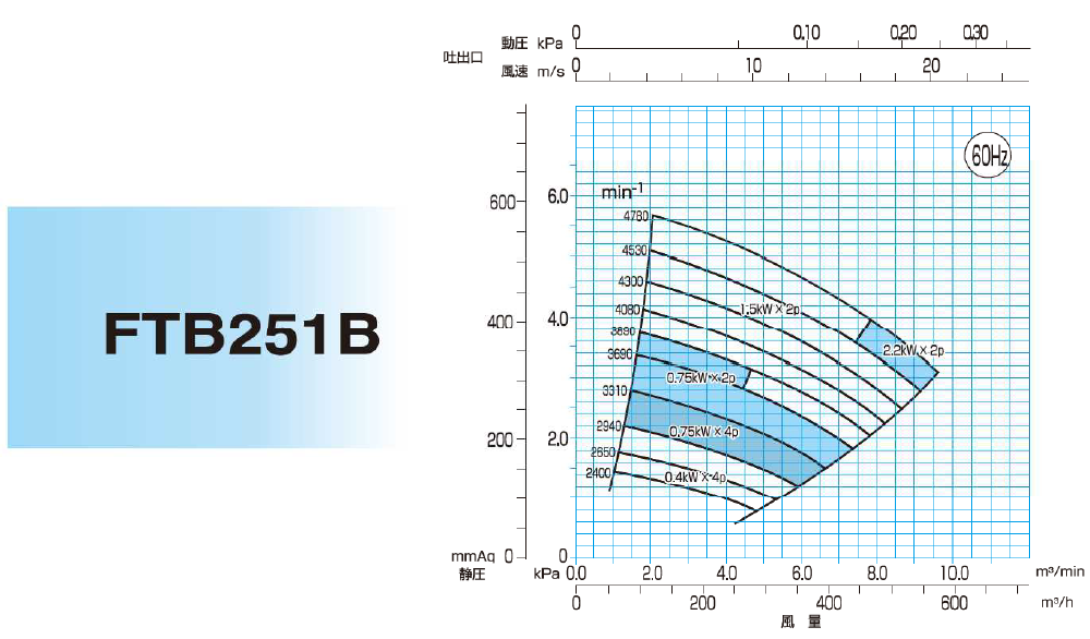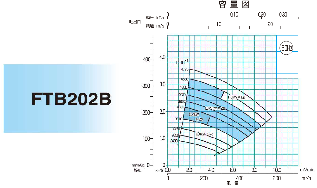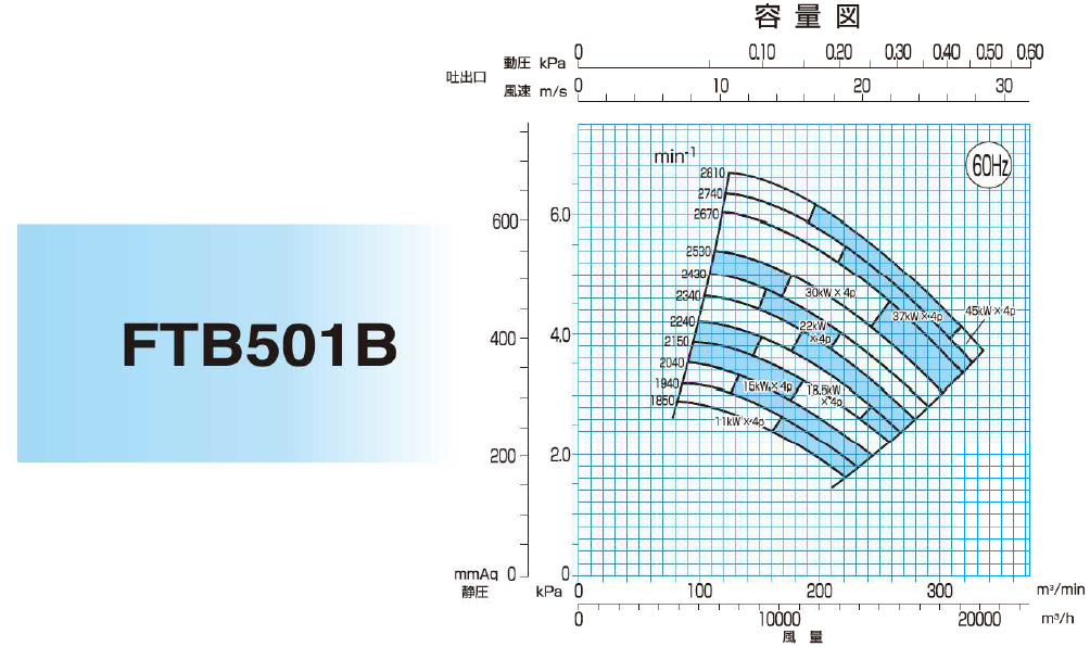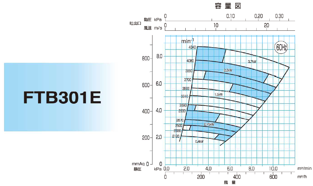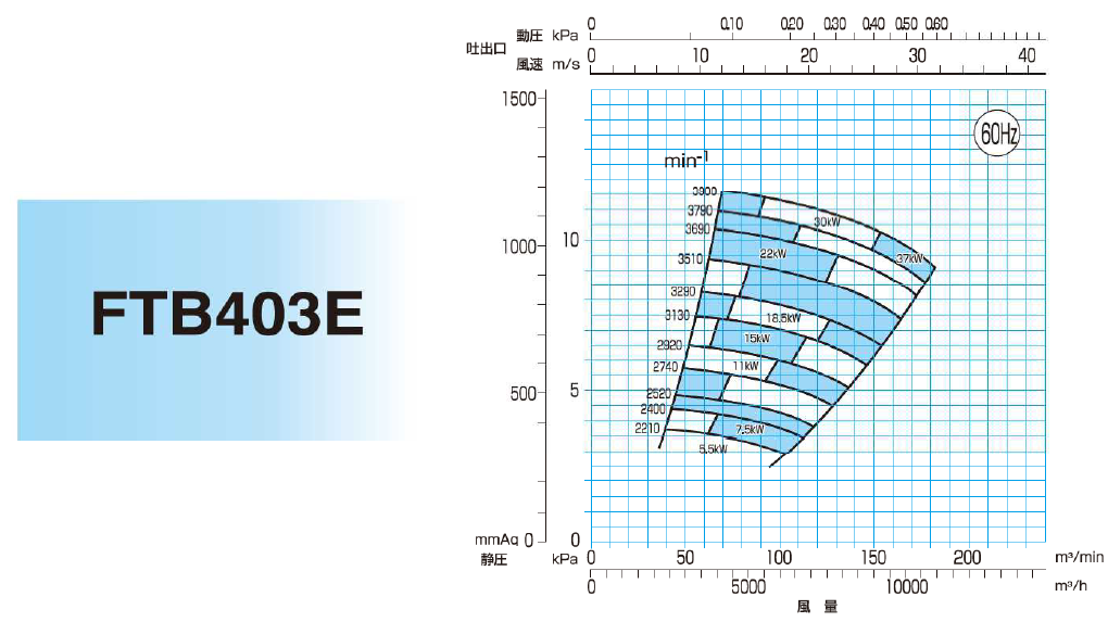- 各機種的靜壓與風量範圍大幅擴展,適用範圍更廣。