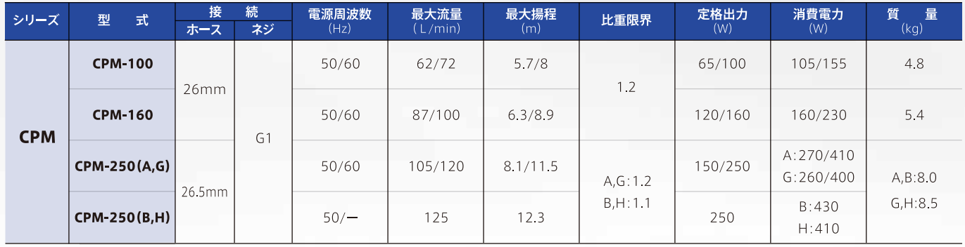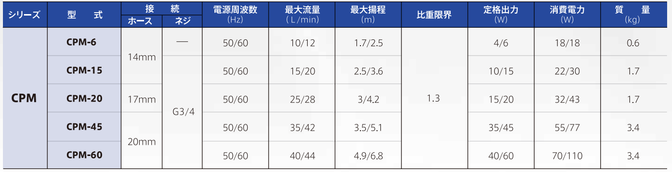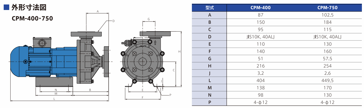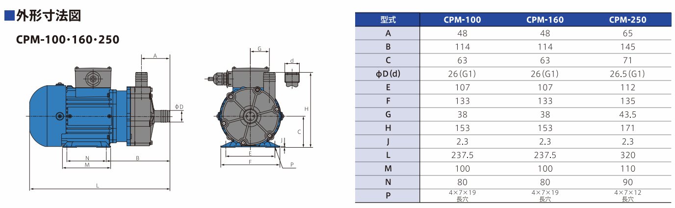CP系列為小型、高效率、樹脂材質製無軸封磁力泵浦。