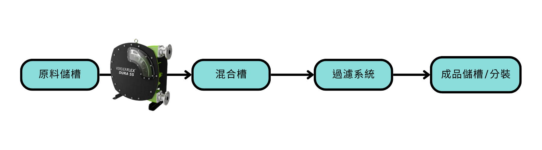 整個輸送與混合過程需採用高耐腐蝕、無污染的設備,避免化學反應或交叉污染,可選用Verderflex 軟管泵浦 Dura系列專業設備解決輸送問題,以符合製程的安全與品質要求。