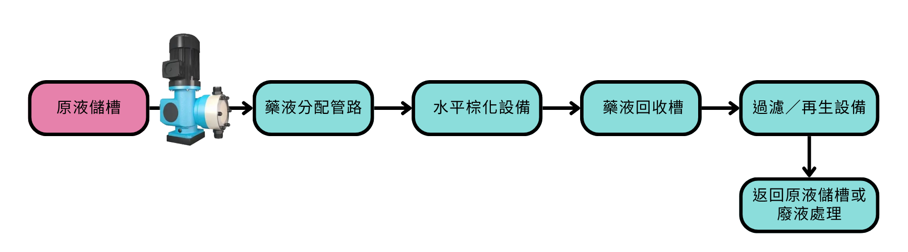 Sera機械式膜片定量泵浦 RF 410.2 e 系列運用在此製程的優點: