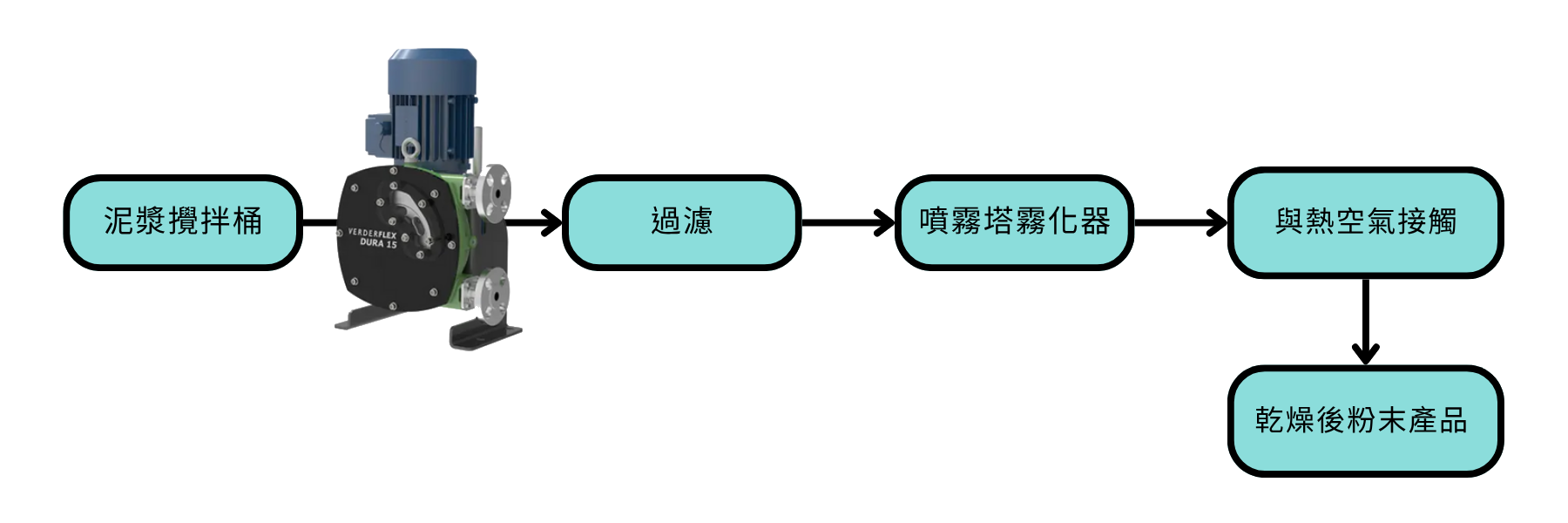 實驗型噴霧塔乾燥製程 | 陶瓷材料廠 輸送泥漿:Verderflex 軟管泵浦 Dura系列