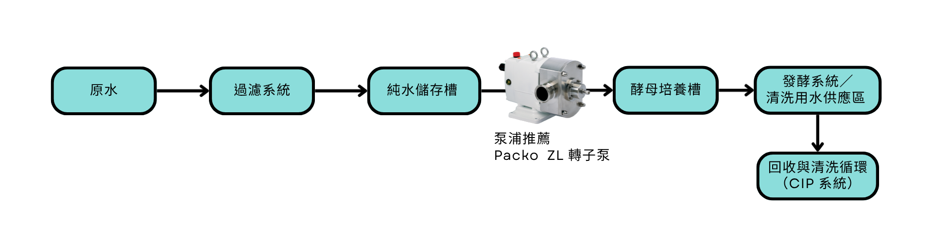 酵母工廠製程 | 酒廠-輸送純水:Packo食品衛生級轉子泵浦系列