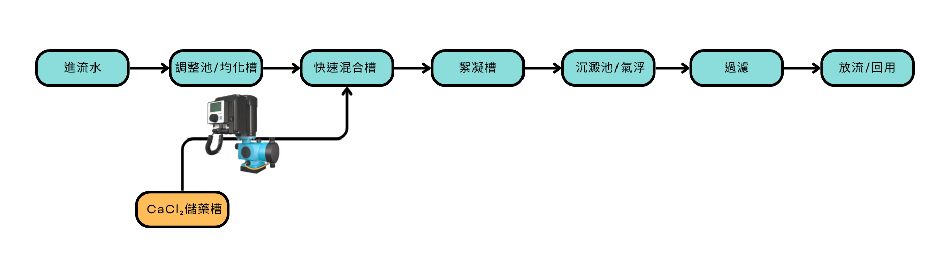 在化學廠的廢水處理系統中,為了讓後段的沉澱、脫水更穩定,常會透過「化學調質」來改善廢水中膠體與細懸浮固體的凝聚條件。以 36% 氯化鈣為例,它可作為提升離子強度、促進顆粒架橋與改善反應條件的藥劑之一,協助讓後續混凝/絮凝反應更容易形成可沉降的絮體,並降低製程波動造成的出水品質風險。